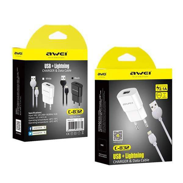 شارژر دیواری اوی مدل C-832 به همراه کابل تبدیل لایتنینگ
