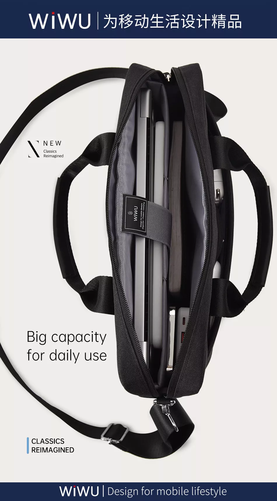 پارچه مقاوم در برابر نفوذ مایعات دارد قابل حمل به صورت عمودی است دارای دستگیره انعطاف پذیر است دارای لوگو اورجینال wiwu بر روی کیف میباشد محفظه مخصوص نگهداری لپ تاپ دارای پدهای ضد ضربه می باشد دسته طراحی شده ارگونومیک محکم که قابلیت حمل حداکثر را فراهم می کند. تمام قسمت های دارای زیپ بادوام YKK پوشانده شده اند که مانع از ورود گردوغبار و آب می باشد جنس پارچه داخل کیف: آستر بسیار نرمخز مصنوعیکه در برابر هرگونه ضربه ، خراش و گرد و غبار محافظت بهتری دارد.