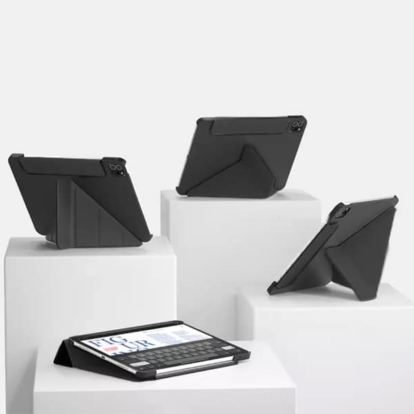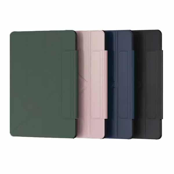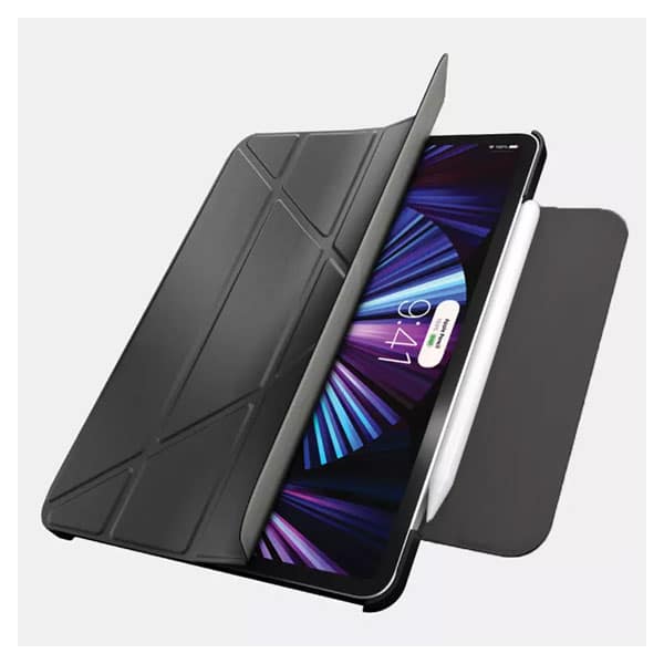 کاور ویوو مدل Transformer ipad folio case مناسب سه سایز آیپد در اندازه های 10.2 و 10.5 اینچ ،10.9 و11 اینچ و 12.9 اینچ است این مدل با یک پوشش نرم داخلی و بدنه مقاوم ایمنی بالایی را برای آیپد شما به همراه دارد . همانطور که در تصاویر محصول مشخص است این قاب دارای یک استند نگه دارنده 4 حالته است که با توجه به نیاز و زاویه مورد نیاز شما میتواند تغییر حالت دهد و کاربری آسان تری برای شما به ارمغان بیاورد . این کیف کلاسوری هوشمند است که با بسته شدن کیف کلاسوری ایچد نیز صفحه اش خاموش میشود که باعث افرایش بهره وری 50 درصدی باتری میشود. جنس داخل و پشتی این قاب از نوع آستر میکرو فیبر نرم است که یک جنس ضد قارچ و عدم حساسیت زا است. در 4 گوشه این قاب از پلاستیک نوع سخت استفاده شده تا فشار های ناشی از ضربه را به خوبی جذب و به بیرون دفع کند تا باعث عدم آسیب رسانی به ایپد بشود.هم چنین فضا برای نگه داشتن قلم آیپد را داراست .