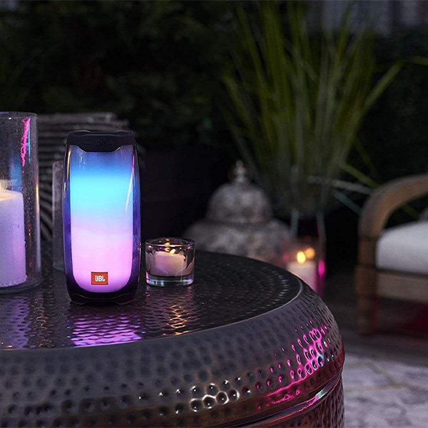 اسپیکر Pulse 4 از سری محصولات تولید شده توسط کمپانی JBL است که به عنوان یک اسپیکر پرتابل روانه بازار شده است. این اسپیکر دارای قابلیت صدای 360 درجه و LEDهایی مخصوص برای نورپردازی است که میتوانید میهمانی خود را با استفاده از این قابلیتها شروع کنید. در ادامه با تهران اسپیکر برای معرفی بهتر این اسپیکر همراه باشید. اسپیکر Pulse 4 به صورت خارقالعادهای در شب میدرخشد و با نورپردازی 360 درجه خود، نمایشی زیبا و جذاب برای شما فراهم میکند. این اسپیکر دارای قابلیت صدای 360 درجه نیز میباشد، به همین دلیل صدا را در تمام نقاط به صورت یکسان پخش میکند. این اسپیکر دارای باتری لیتیوم یونی قابل شارژ است. با استفاده از پورت USB میتوانید به آداپتور AC متصل شده و اسپیکر خود را شارژ کنید. با هربار شارژ کامل این اسپیکر، به مدت 12 ساعت زمان پخش برای شما فراهم میشود. این اسپیکر به علت پرتابل بودن، دارای بدنهای مقاوم و ضدآب است که به شما این امکان را میدهد تا بتوانید اسپیکر خود را حتی در کنار دریا نیز حمل کنید و از پخش موسیقی باکیفیت و شفاف لذت ببرید. بدنه ضدآب این اسپیکر به گونهای طراحی شده است تا شما بتوانید آن را تا 1 متر در زیر آب ببرید و به موسیقیهای مورد علاقه خود گوش دهید. این اسپیکر دارای قابلیت اتصال بین اسپیکرهای سازگار را نیز دارد. با استفاده از این قابلیت میتوانید به آسانی بین اسپیکرهای سازگار با یکدیگر اتصال برقرار کنید و موسیقیهایتان را پخش کنید. Pulse 4 دارای قابلیتی است تا شما بتوانید به آسانی قابلیت نورپردازی اسپیکرتان را همگام سازی کنید. شما میتوانید اسپیکر خود را تکان دهید تا به آسانی سیستم نورپردازی آن همگام سازی شود.