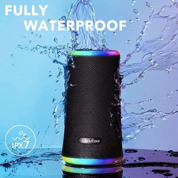 بدنه ی این اسپیکر پرتابل با دارا بودن گواهینامه بین المللی IPX7 کاملا ضد آب بوده و در برابر نفوذ آب و گرد و خاک بسیار مقاوم می باشد بصورتی که میتوانید آن را داخل آب کاملا غرق کنید ، مشاهده خواهید کرد که اسپیکر همچنان به کار خود ادامه میدهد. این ویژگی به شما کمک می کند تا این سیستم صوتی همراه را با خود به هر مکانی حمل کرده و نگران آسیب های احتمالی نباشید ، زیرا این محصول در هر شرایطی حتی هنگام بارش باران یا در کنار استخر از خود مراقبت می کند. این ویژگی برای یک اسپیکر پرتابل که قرار است در سفر ها و گردش ها همراه ما باشد بسیار مهم و ضروری است.