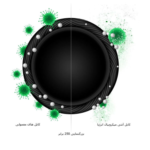 کابل انرژیا مدل FibraTough از موارد آنتی میکروبیال تولید شده و در برابر رشد انواع باکتری٫ میکروب و قارچ حتی در هوای مرطوب مقاوم است